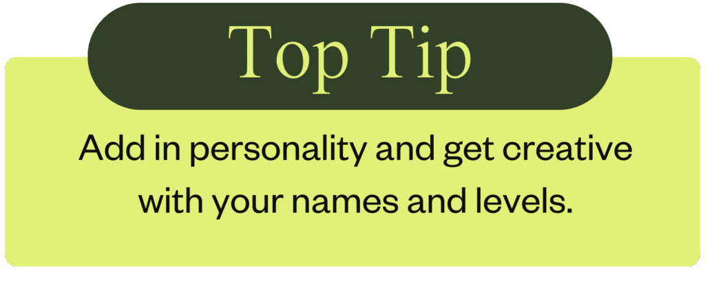 Top tip: Getting creative with your names and levels is a great way to add some personality and help your brand and ask stand out from the crowd.